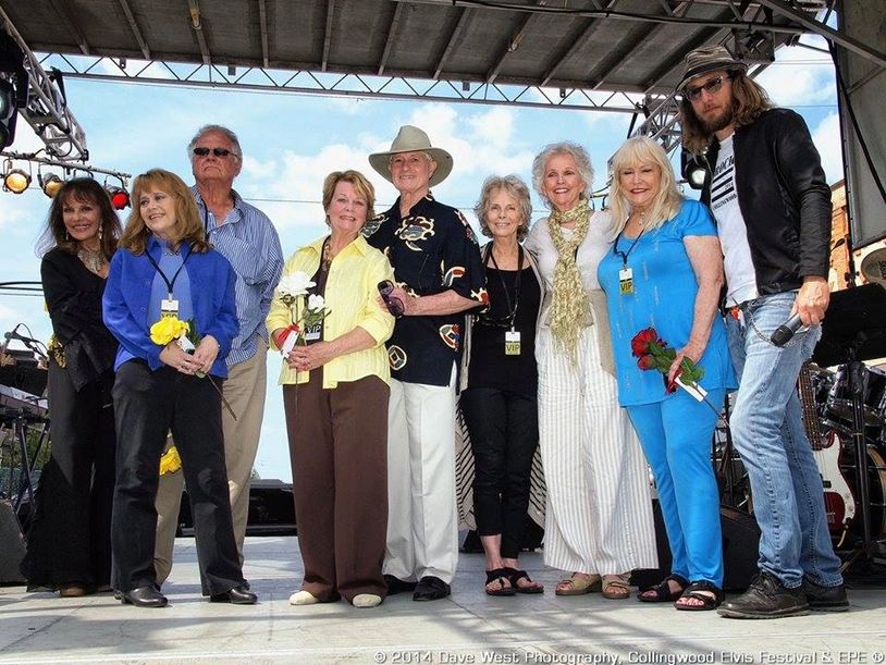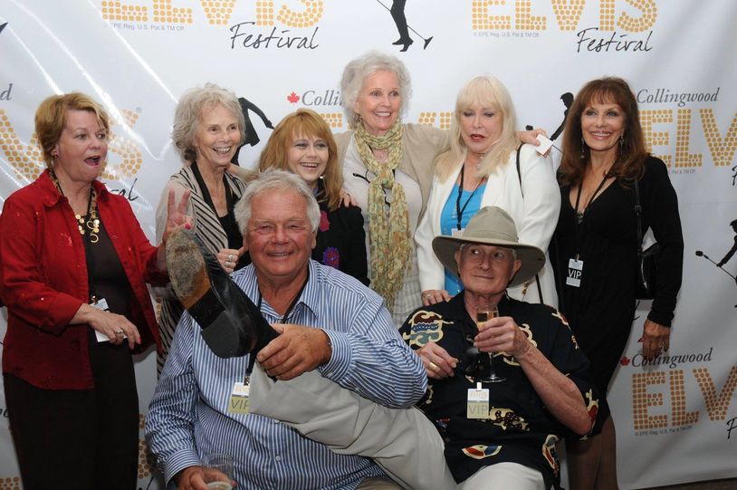 Left to Right: Back row: CYNTHIA PEPPER, "Kissin' Cousins," ANNE HELM, "Follow That Dream," VICTORIA PAIGE MEYERINK, "Speedway," MARLYN MASON, "The Trouble With Girls," CHRIS NOEL, "Girl Happy," TANYA LEMANI, "The '68 Comeback Special." Front row: GARY LOCKWOOD, "It Happened at the World's Fair," and "Wild in the Country," and CHRISTOPHER, "Viva Las Vegas," "Roustabout," "Double Trouble," "Tickle Me," "Spinout," "Clambake," and "The '68 Comeback Special."