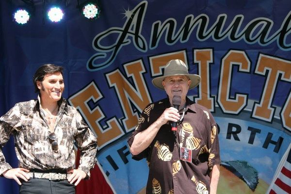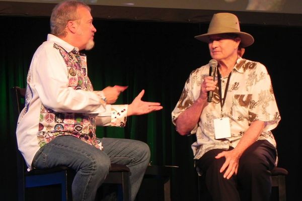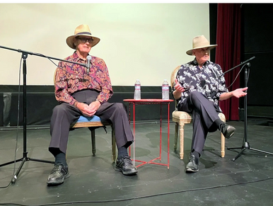 MICHAEL DANTE (L) appeared in the 1962 ELVIS film "Kid Galahad" which was partially filmed in the town of Idyllwild, California. CHRISTOPHER and MICHAEL took questions from the audience about "all things ELVIS" at the beautiful Rustic Theatre.